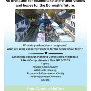 Langhorne Borough has been a National Historic Register District in PA since 1987. The Borough’s history, spanning over three centuries, is apparent in our tree-lined streets, quaint alleys and in the midst of door-yard gardens within our one-half square mile boundary. Our history and unique identity continue to be reinforced by residents with deep community pride and vision.