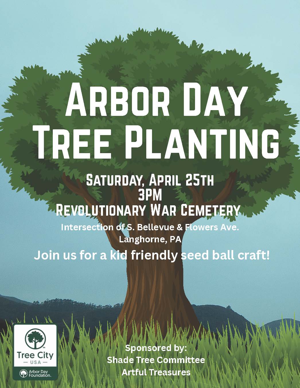 On Saturday, April 25th at 3pm, the Shade Tree Commission is hosting an Arbor Day celebration and commemoration the brave Revolutionary War soldiers who fought for American independence. A tree will be planted at the Revolutionary War Cemetery in honor of the soldiers buried there, and the Shade Tree Commission is partnering with Artful Treasures to hold a wildflower seed ball craft event for the kids (and adults too, it’s fun for everyone!).